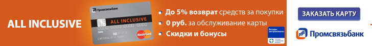 Преимущества дебетовой карты «All Inclusive» ShoppingCard от «Промсвязьбанка»: